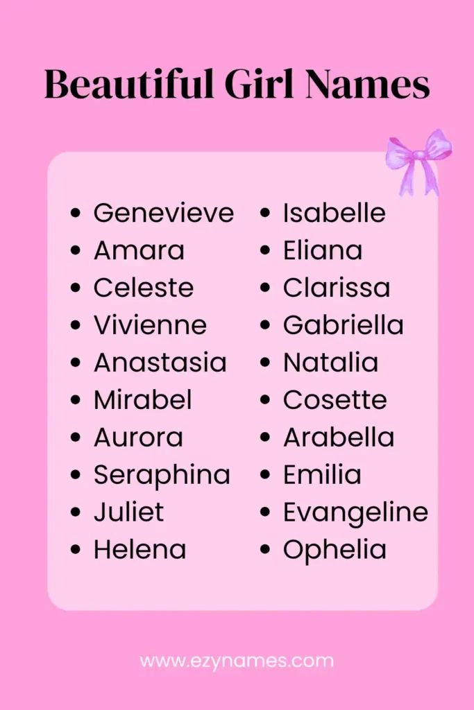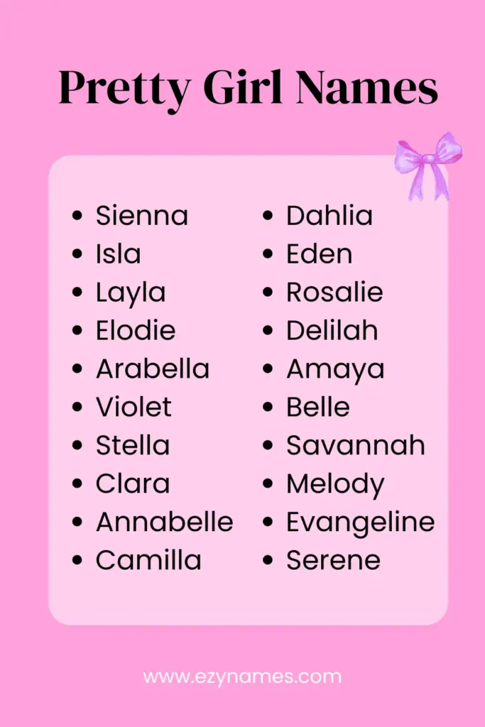 Pretty girl names combine beauty with elegance. These names often have soft sounds and graceful meanings that parents love.